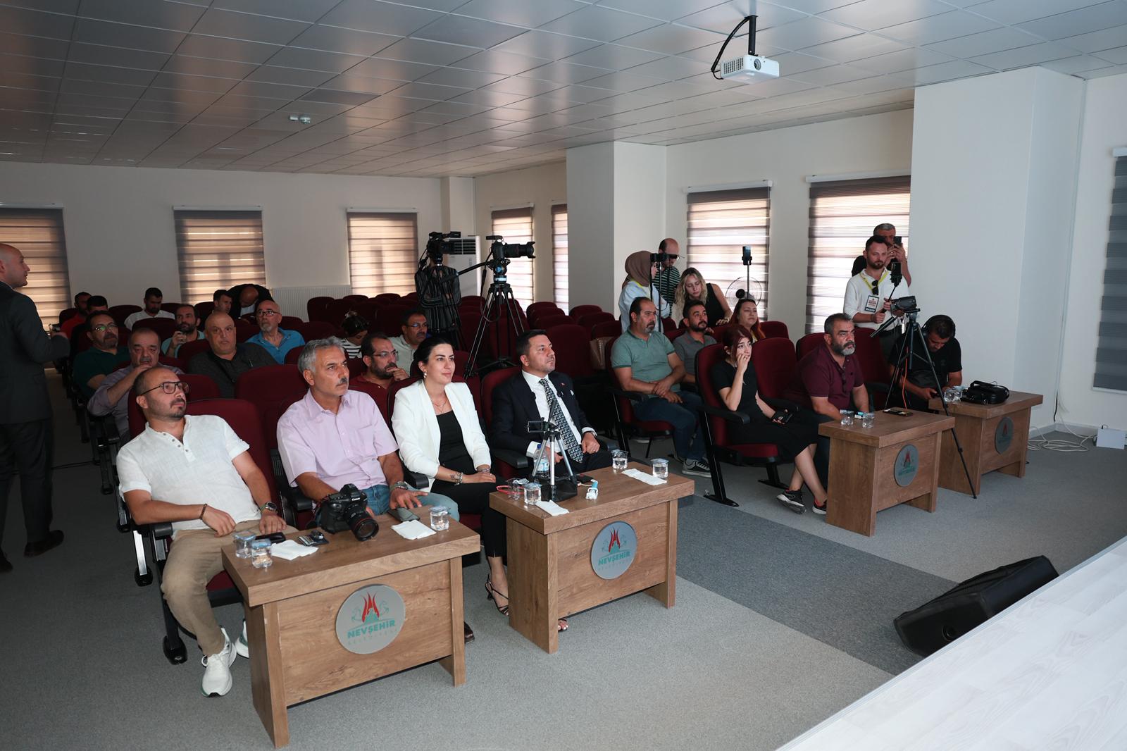 Belediye Başkanı Arı, Nevşehir Belediyesi Kadın ve Aile Hizmetleri Müdürlüğü Toplantı Salonu'nda kentte görev yapan gazetecilerle bir araya geldi.