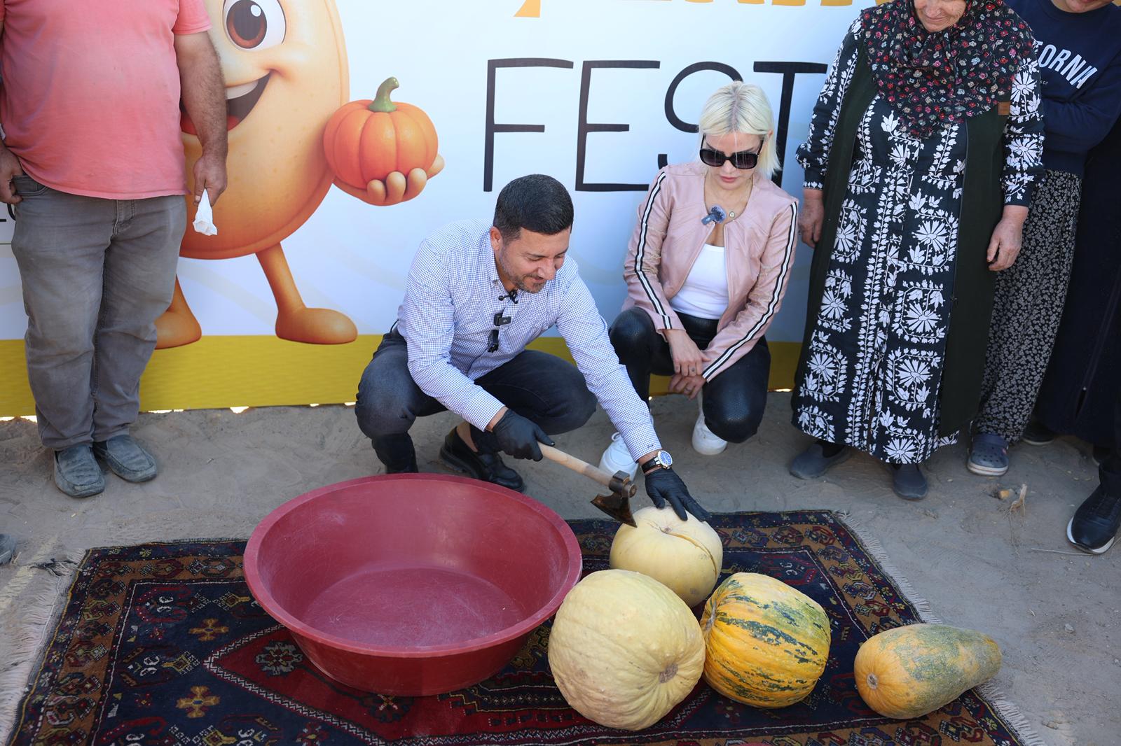 Nevşehir Belediyesi tarafından düzenlenen 2. Kabak Çekirdeği Festivali kapsamında Nevşehir’in Acıgöl ilçesine bağlı Tepeköyü’nde kabak çekirdeği tarlasında hasat gerçekleştirildi. Hasat etkinliğine Nevşehir Belediye Başkanı Rasim Arı, siyasi parti temsilcileri, daire müdürleri ve vatandaşlar katıldı. Başkan Arı ve misafirler çerezlik kabak çekirdeğini Tepeköylü kadınlarla birlikte ayıklayıp, daha sonra traktörle tarladaki kabakların hasadına başladı.
