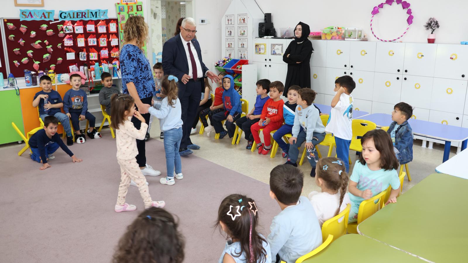 İl Millî Eğitim Müdürü Yusuf Yazıcı, Müdür Yardımcısı Murat Saltık ve Şube Müdürü Yusuf Aydoğmuş eşliğinde; okul öncesi eğitimde yürütülen çalışmaları yerinde görmek, minik öğrencilerin öğrenme heyecanına ortak olmak amacıyla H. Mesut Çetin Anaokulunu ziyaret ettiler.