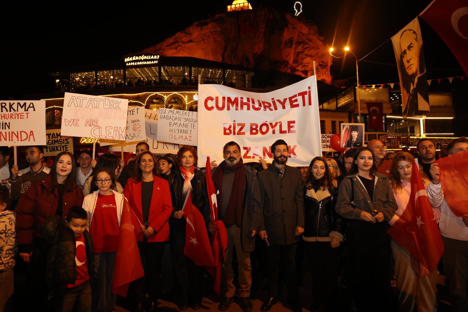 “Cumhuriyetimizin değerlerine sahip çıkan, Atatürk ilke ve inkılaplarını yaşatan bir şehir olmanın mutluluğunu yaşıyoruz. Bu büyük bayramda bir araya gelen tüm hemşehrilerimize teşekkür ediyorum. Cumhuriyet Bayramımız kutlu olsun.”