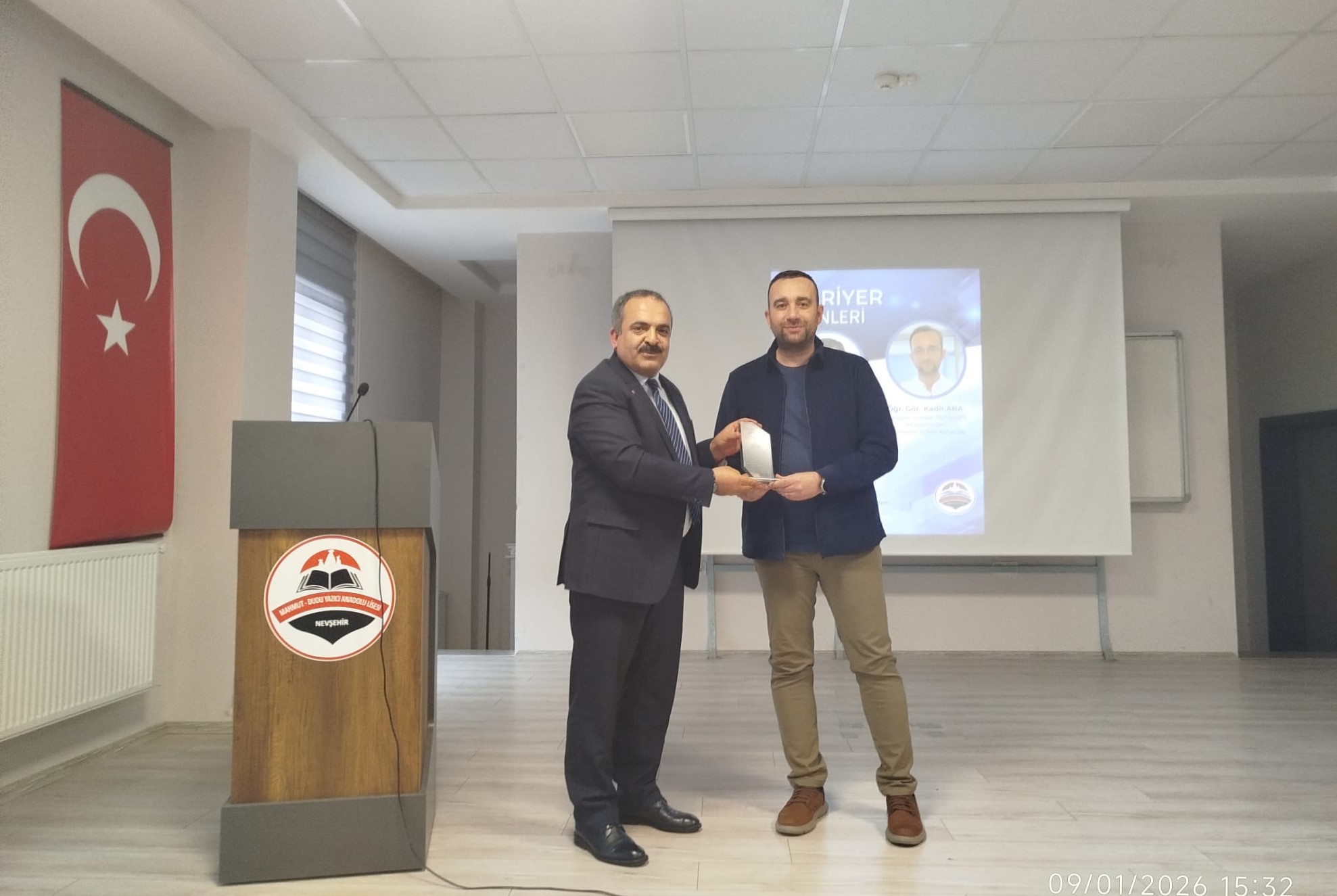 Program sonunda, okul yönetimi tarafından katkılarından dolayı konuşmacılara teşekkür plaketi takdim edildi. Plaket takdimi, günün anısına çekilen fotoğraflarla sona erdi.
