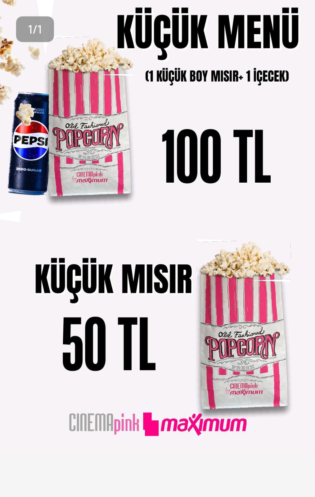 CinemaPink by Maximum yetkilileri, “Nevşehir’e sinema keyfini eski güzel günlerindeki gibi uygun fiyatlarla getirdik. Aşk dolu bir akşam için biletler 100 TL, mısır hediyemizle taçlansın!” diyor.