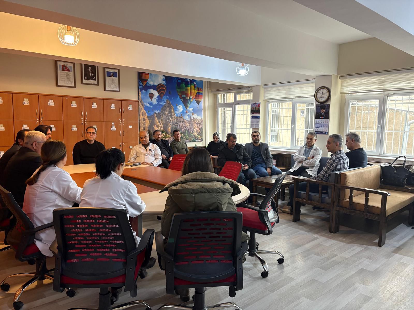 Ziyaret kapsamında öğretmenler odasında eğitim kadrosuyla bir araya gelen Müdürümüz, geçtiğimiz