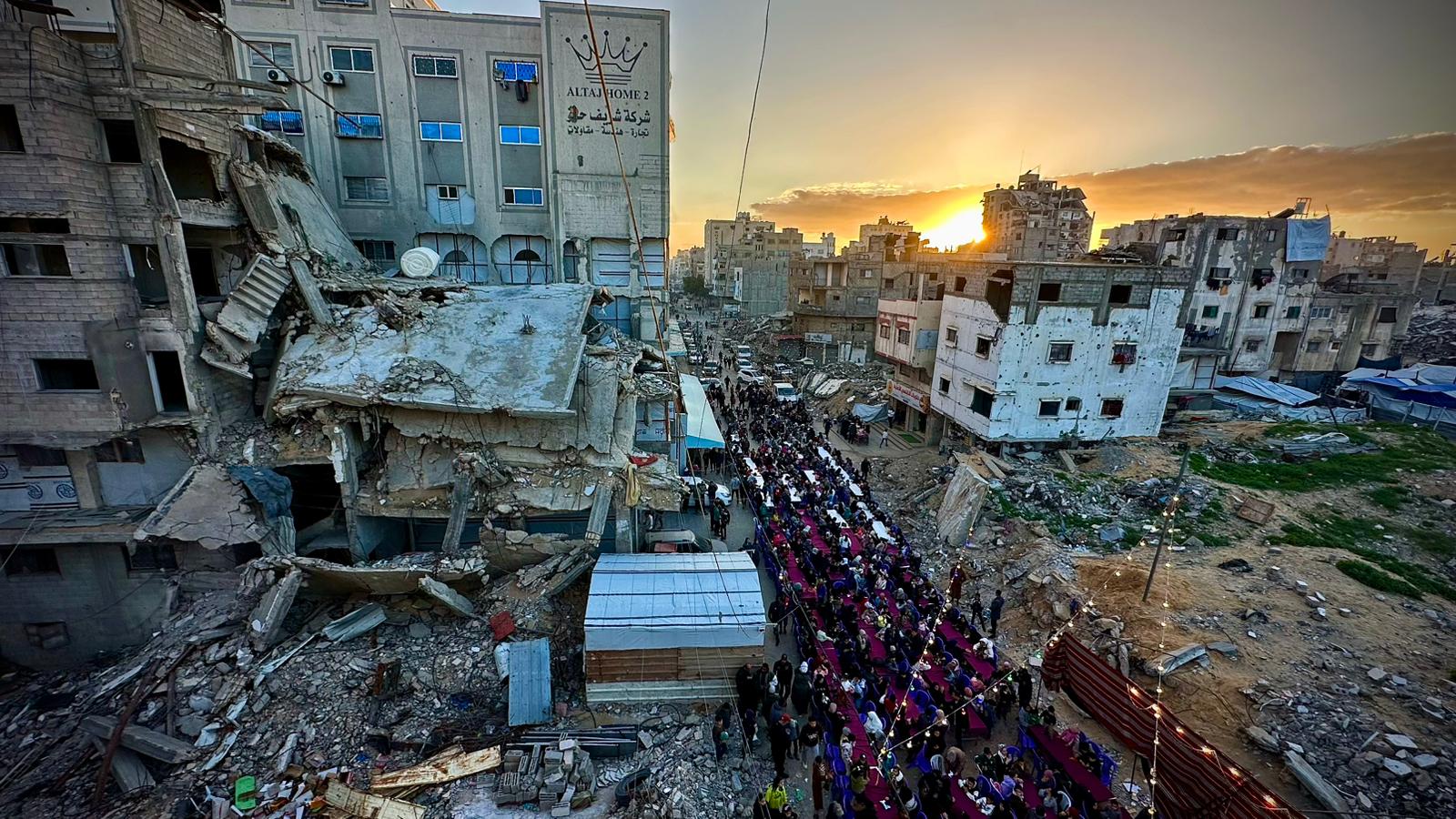 Ramazan ayının ilk gününde Türk Kızılay, Gazze’de yerinden edilen Filistinliler için iftar programı düzenledi. Gazze kentinin orta kesimindeki Yermuk bölgesinde kurulan sokak iftarında yüzlerce aile aynı sofrada bir araya geldi. Zorlu koşullar altında yaşam mücadelesi veren sivillere sıcak yemek ikram edilerek Ramazan’ın dayanışma ruhu paylaşıldı.