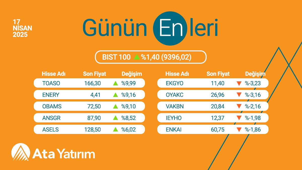 17 Nisan 2025 tarihinde Borsa İstanbul'da (BIST100) yaşanan hareketliliğin ardından, Ata Yatırım aracılığıyla işlem gören bazı hisseler dikkat çekici performans sergiledi. Bu hisselerin hangi yönde değer kaybettiğini veya kazandı ğini incelemek, yatırımcılar için önemli bir veri kaynağı oluşturuyor.